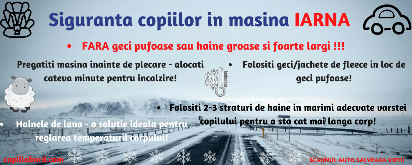 După articolul despre siguranța copiilor în mașină vara cred că este necesar și unul cu siguranța lor în mașină iarna, mai ales că acum se pot face multe greșeli de utilizare a scaunelor auto.