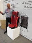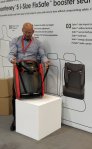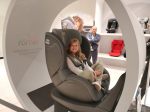 Britax-Romer cred că au venit cu prezentarea cea mai faină dintre toate. Un scaun Dual-Fix pe măsură adulților și au prezentat cu ajutorul realității virtuale cum se simte un copil într-un scaun cu spatele la sensul de mers într-un impact.