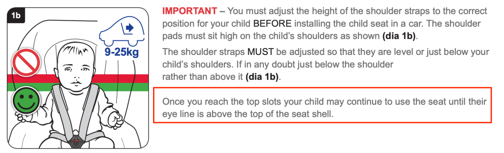 Citiți ÎNTOTDEAUNA manualul de utilizare al scaunelor auto! Acolo veți găsi mereu cum trebuie folosite, care este nivelul recomandat al centurilor sau limita de înălțime și de kilograme, plus alte răspunsuri la întrebările legate de scaunul dumneavoastră și dacă nu găsiți în manual puteți oricând să contactați producătorul pentru a vă lămuri neclaritățile, sau pe site-ul lor majoritatea au o secțiune cu cele mai frecvente întrebări.