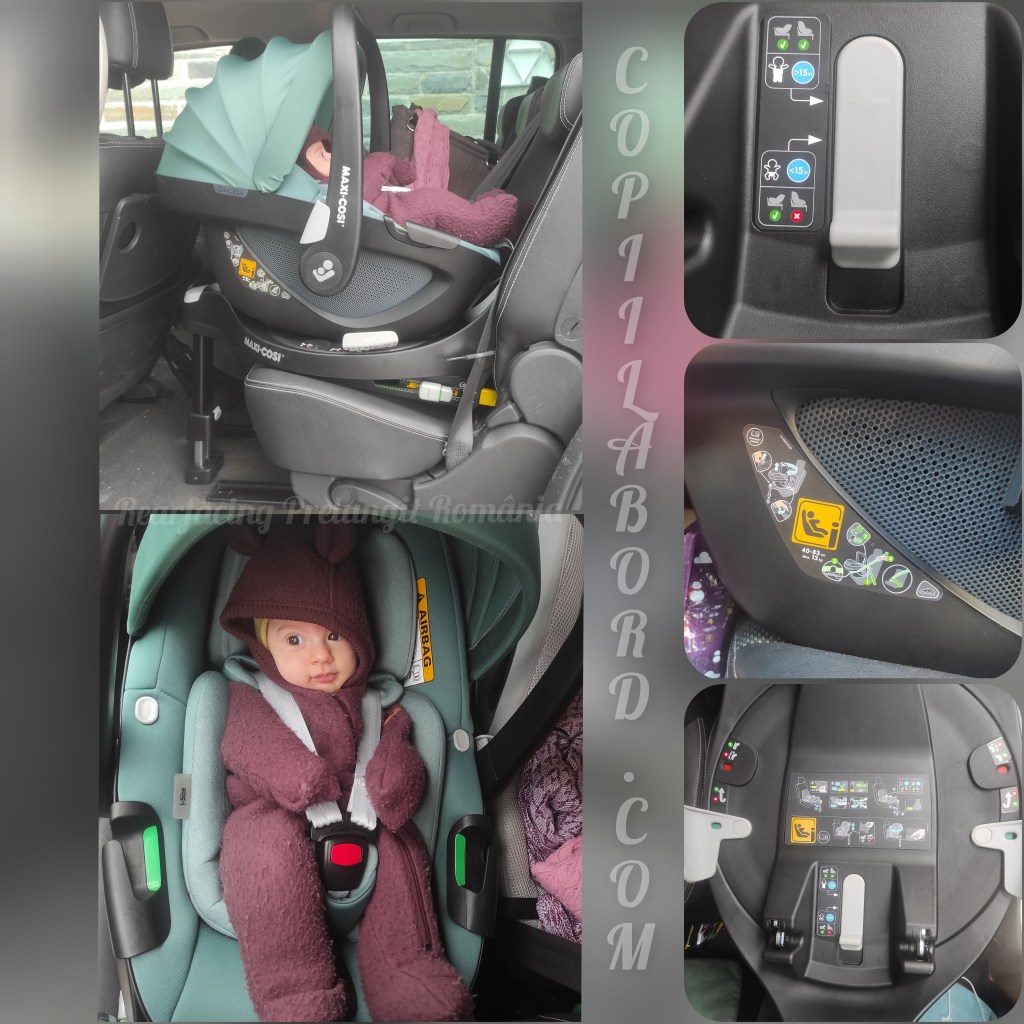 Baza isofix este foarte ușor de instalat, aveți mai sus în playlist video de la MaxiCosi cum să o instalați. Este ușor de folosit, atât de pus cât și de scos scoica din bază. Pentru că face parte din sistemul modular 360 are și opțiunea de a fi folosită cu scaun cu fața la sensul de mers, ceea ce nu vă recomand pentru că RF (cu spatele la sensul de mers) este mult mai sigur pentru orice copil! Dar ce vroiam să spun este că aveți un buton pe bază care spune clar că până la 15luni MINIM orice puneți pe baza ( scoică sau scaun) TREBUIE FOLOSIT OBLIGATORIU cu spatele la sensul de mers.